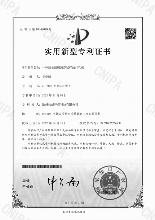 • 膜測(cè)厚試樣的打孔機(jī)專利